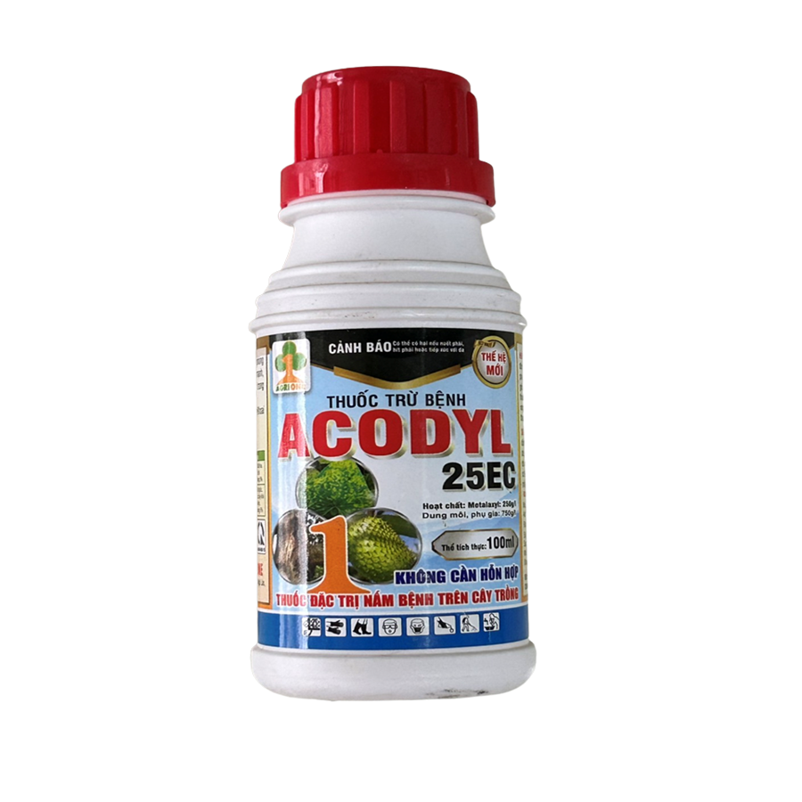 ACODYL 25EC là thuốc phòng trừ bệnh phổ rộng có tác dụng lưu dẫn mạnh, thuốc xâm nhập và di chuyển nhanh trong cây để tiêu diệt triệt để nấm bệnh. Thuốc được đăng ký đặc trị Sương mai/khoai tây, thối rễ/hồ tiêu. Ngoài ra có thể phòng trừ bệnh hiệu quả trên các loại cây trồng khác.