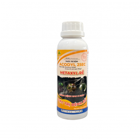 ACODYL 25EC là thuốc phòng trừ bệnh phổ rộng có tác dụng lưu dẫn mạnh, thuốc xâm nhập và di chuyển nhanh trong cây để tiêu diệt triệt để nấm bệnh. Thuốc được đăng ký đặc trị Sương mai/khoai tây, thối rễ/hồ tiêu. Ngoài ra có thể phòng trừ bệnh hiệu quả trên các loại cây trồng khác.
